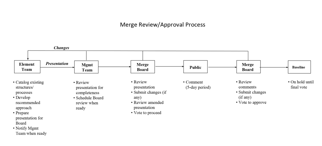 Step Five: Once member feedback has been received, the work teams review the feedback and modify as needed before sharing their final recommendations with the combined boards. Please remember that the documents we are sharing represent a work in progress, not the final proposals. That’s why your input is so important.
